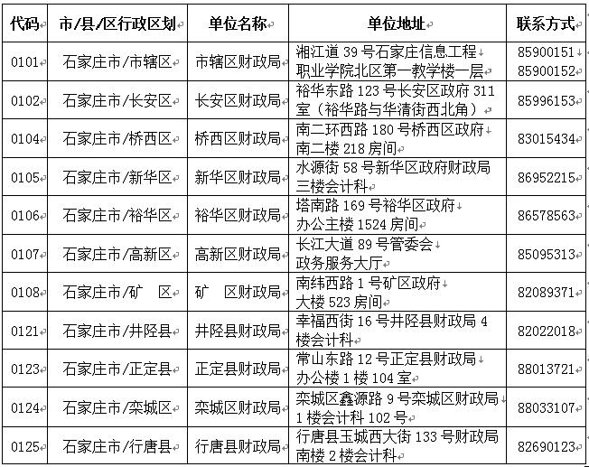 报考石家庄考区2016年第二季度会计从业资格考试且成绩合格的考生,请于7月26日起携带本人身份证原件(复印件无效)到报名所选辖区会计管理机构领取合格证书,证书保管期限为6个月,过期未领,如有遗失毁损,考生个人自负。 建议考生在领取证书之前,先通过“河北财政信息网”——“会计服务”栏目——“会计人员信息验证查询”功能来查询个人档案信息,按照个人信息中“现所在地行政区划”的内容到相应的管理机构办理证书领取事宜。例如,现所在地行政区划为“石家庄市/市辖区”的,要到石家庄市会计人员从业资格证管理中心领取,为“石家庄市/裕华区”的,要到裕华区财政局会计科领取,等等。 石家庄市会计人员从业资格证管理中心网址: http://site.conac.cn/www/051020000/60054146/index.html 会计人员信息验证查询地址: http://kjry.hebcz.gov.cn:7001/acms/portal/IndexAction.do?method=frontLink&link=acmsQuery 附表:石家庄市各级会计管理机构联系方式 石家庄市会计人员从业资格证管理中心 2016年7月22日